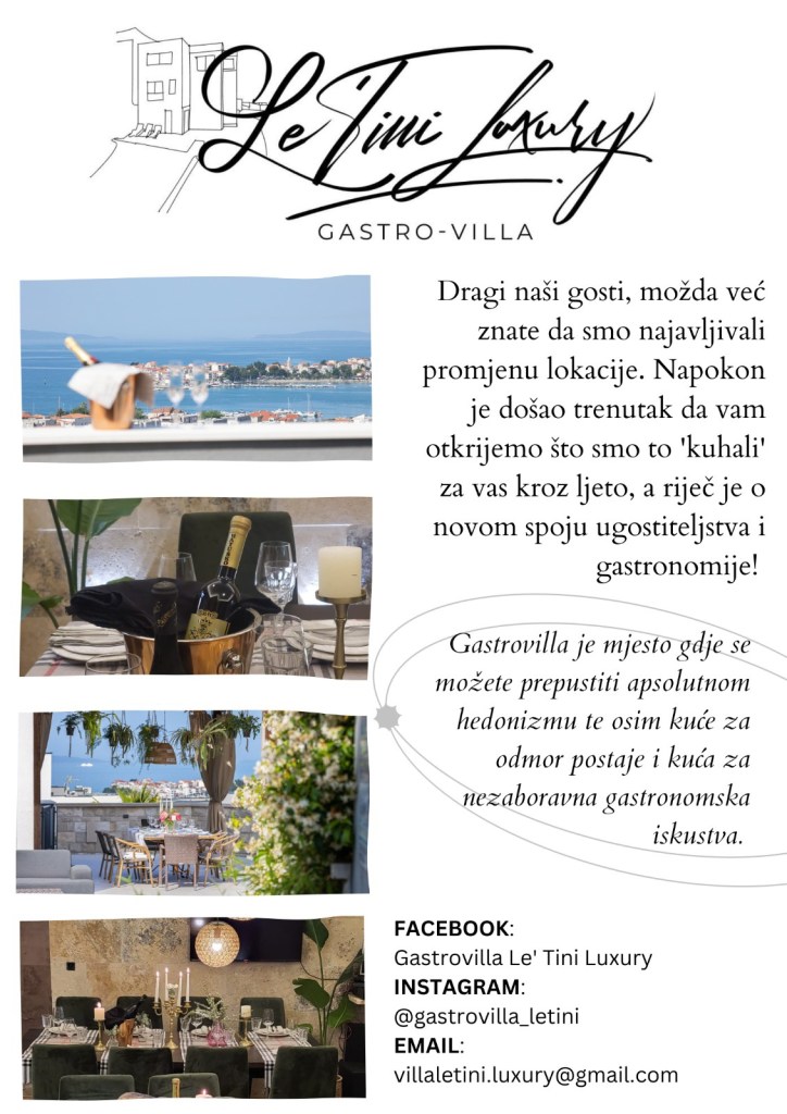 ENG: Gastrovilla Le’ Tini Luxury was created through the desire to combine the luxury of a modern villa with a love for gastronomy and hospitality. As pioneers of the gastrovilla concept in the area of Dalmatia, we dedicated ourselves to the goal of raising the rental property to the level of the source of an unforgettable gastronomic and hedonistic experience.